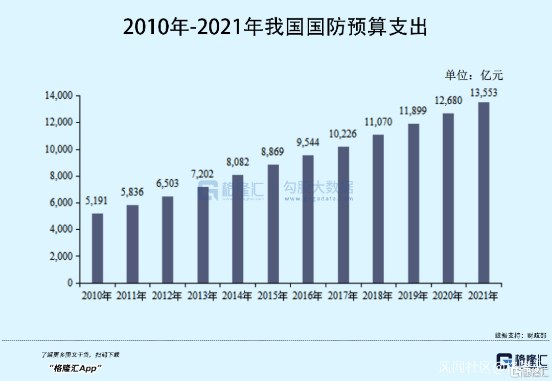 關於模擬集成電路行業的發展狀況及競爭格局,小編在《踩中風口、大客户撐腰,這家百億芯片股欲登科創板,有何看頭?》一文中已有概括,而下游細分應用領域軍品市場規模通常由軍費預算、軍工電子行業市場規模等信息來預測。