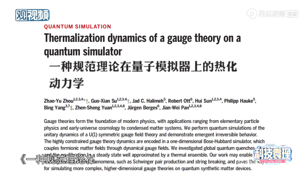 2022年7月15日,他們的論文發表在國際頂級期刊《Science》,標題叫做《一種規範理論在量子模擬器上的熱化動力學》(Thermalization dynamics of a gauge theory on a quantum simulator)(https://www.science.org/doi/10.1126/science.abl6277)。如果一上來就看到這標題,你也許會不知所云,現在你就知道它説的是啥了吧?