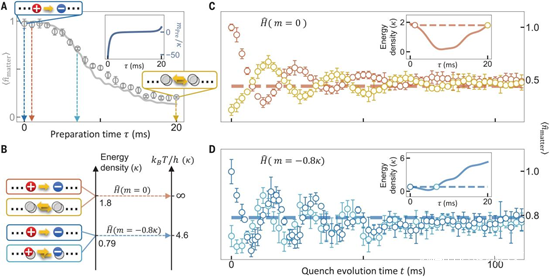 在以上研究的基礎上,通過實驗和理論結合,該團隊將系統製備到遠離平衡的初態,首次實驗研究了規範對稱性約束對量子多體系統熱化動力學的影響,並且觀測到具有相同守恆量的不同初態熱化到同一個平衡態的過程,驗證了熱化過程造成的量子多體系統初態信息的“丟失”,建立了規範場理論早期非平衡動力學與最終熱平衡態之間的聯繫,在使用規模化的量子模擬器求解複雜物理問題的道路上取得了重要進展。
