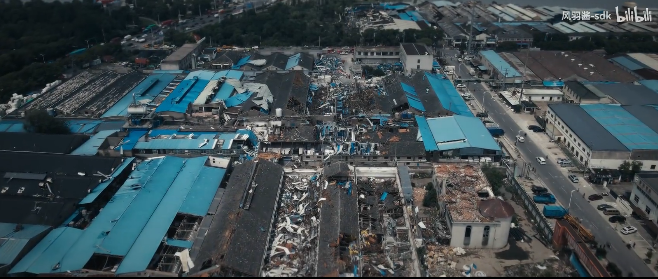 有一次,蘇鏑坷在火車上看到蘇州盛澤發生龍捲風,馬上改簽奔赴現場。親眼目睹龍捲風造成的巨大破壞,他很難過,但還是第一時間記錄現場。他用航拍飛機記錄了3公里的災後現狀,有房屋和牆體坍塌了,到處都是連根拔起的大樹,狀況慘烈到讓他手抖。