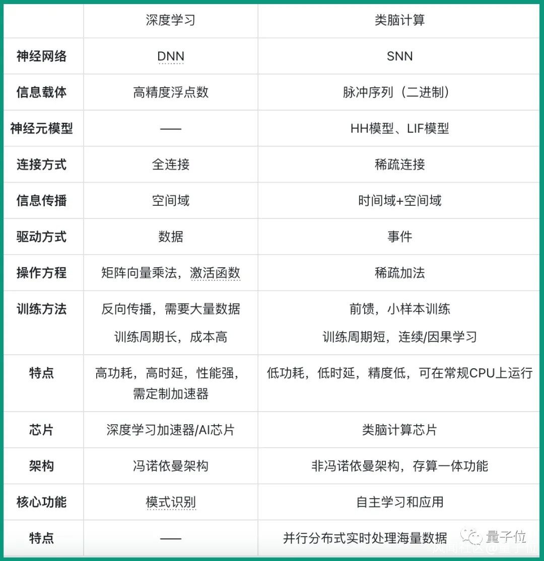 為了便於理解,將類腦計算與當下主流的深度學習作為對比。