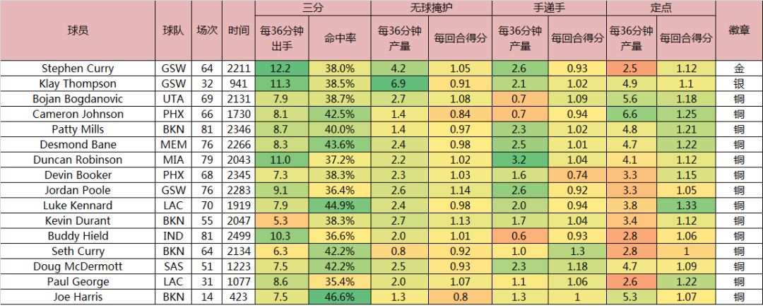 “無球大神”徽章跟之前的所有的徽章都不同,它所涉及的球員眾多,僅僅金銀銅三個級別,已經無法滿足評級要求。某種意義上,“空間”是當今聯盟的頭等大事。一個球員能不能打持球,決定的只是他能不能當主角,5號位之外的4個位置,會不會投籃則會決定他是否能留在聯盟裏打球,這方面不過關,其他方面的要求就要苛刻得多。