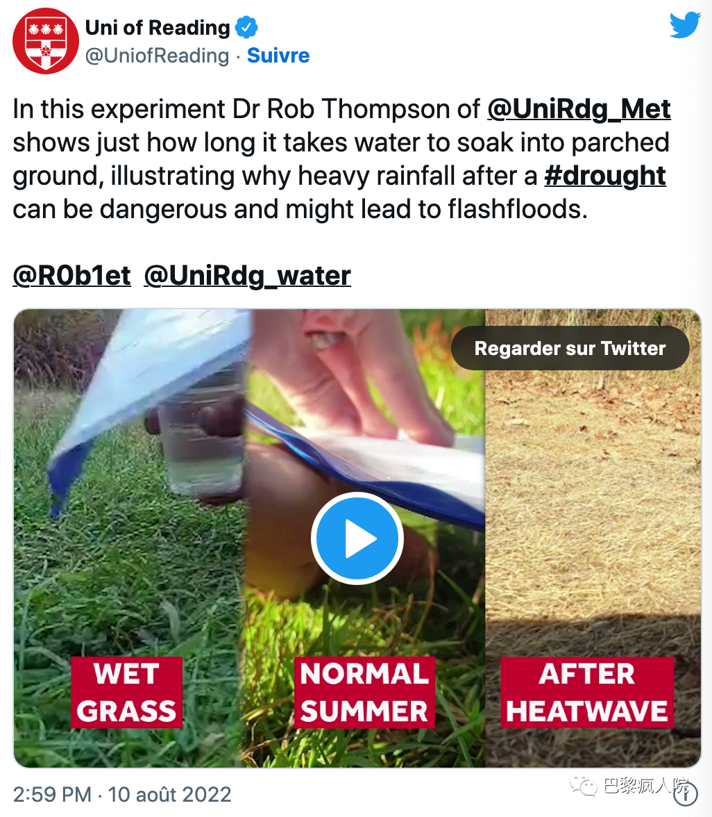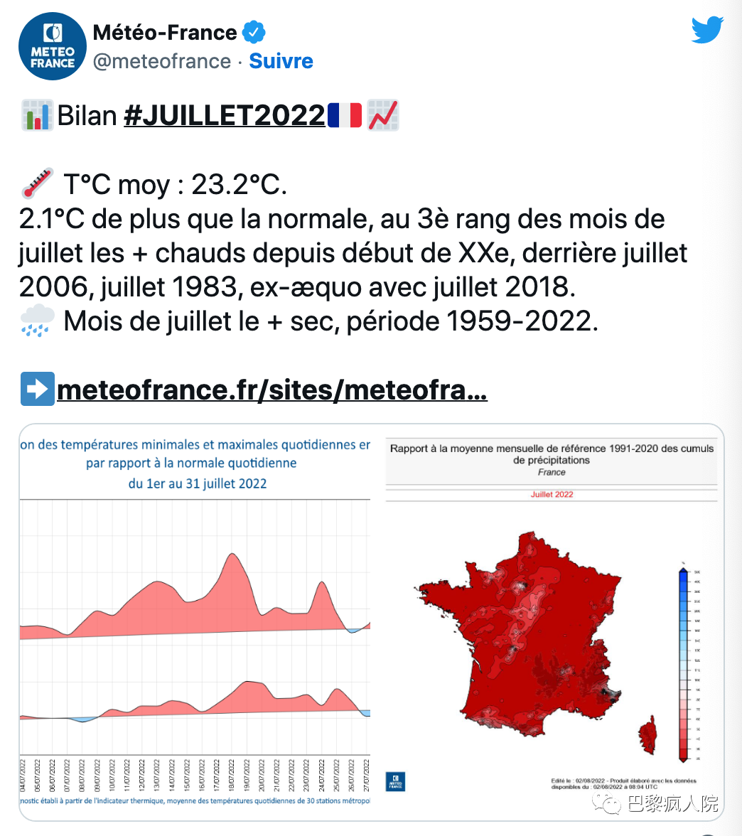 是的,就在暴雨之前,這些地方也一直在新聞上,因為持續的高温,火災,還有史無前例的乾旱今夏第四波高温!歷史級乾旱!法國人民喝水洗澡都成困難?!