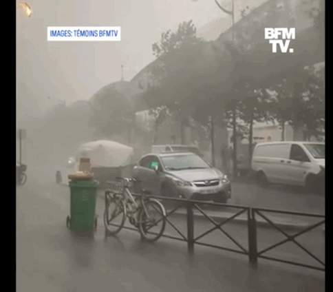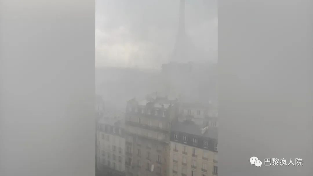 同時,暴雨伴隨着大風,位於埃菲爾鐵塔頂部的站點測得的風速高達104公里/小時,中間甚至還下了一會兒冰雹!