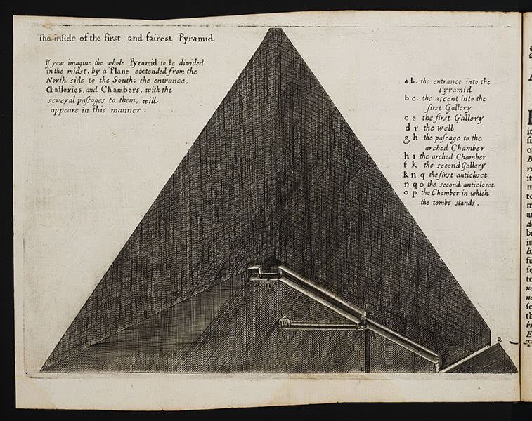 英國天文學家約翰·格里夫斯在各地測量經緯度時,也到埃及對金字塔內外做了仔細的測量並畫出了結構圖。這本書出版於1646年。