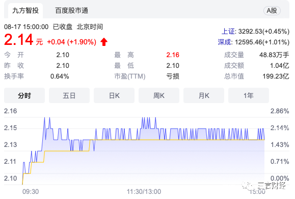 截至今日收盤,ST易購的股價2.14元/股,總市值僅199.23億元。