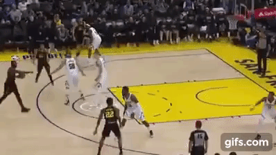 因為庫裏的三分威脅過於驚人,對手會鎖他的上線接球,那勇士的變化就來了: