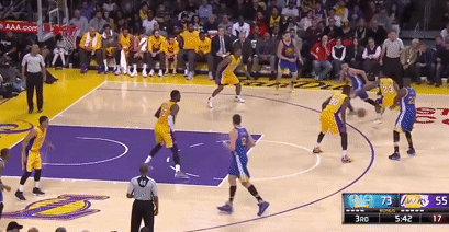 但勇士類似的空切更多,是因為庫裏和克雷的三分威脅巨大,拉開的內線空間更寬廣。