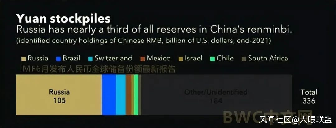 不僅於此,國際貨幣基金組織最新報告顯示,人民幣在全球儲備中的份額有所增長,目前人民幣儲備份額佔近年來從美元儲備份額轉移出來的25%。俄羅斯、巴西、瑞士、以色列、智利、南非至少6國都在增加人民幣儲備,進而替代之前的部分美元儲備份額。