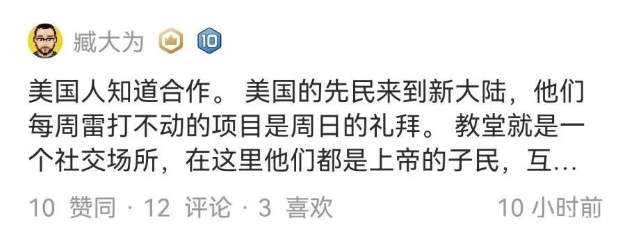 看了滿屏幕的吹捧和跪舔,一口一個“自由、先進、文明、私有制、契約精神、團結協作、宗教信仰、制度優越、自我糾偏、人心所向”,實在是令人恍若隔世……上世紀古墓派公知的話術都出來了。