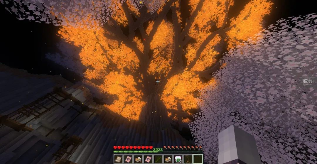 除了展館之外,看得出來主辦方在地圖的規劃與交通方式上也下了不少功夫。剛進服務器,就可以看見頭頂散發着微弱光芒的巨大黃金樹——本屆比賽的主題是“火”,地圖與存檔點的設計玩了不少《艾爾登法環》的梗。