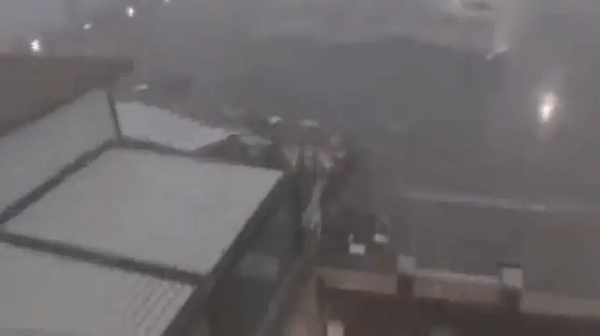 網上流傳的一段戲劇性的視頻顯示了這股暴風的強度,先是一個碎片被吹到空中:
