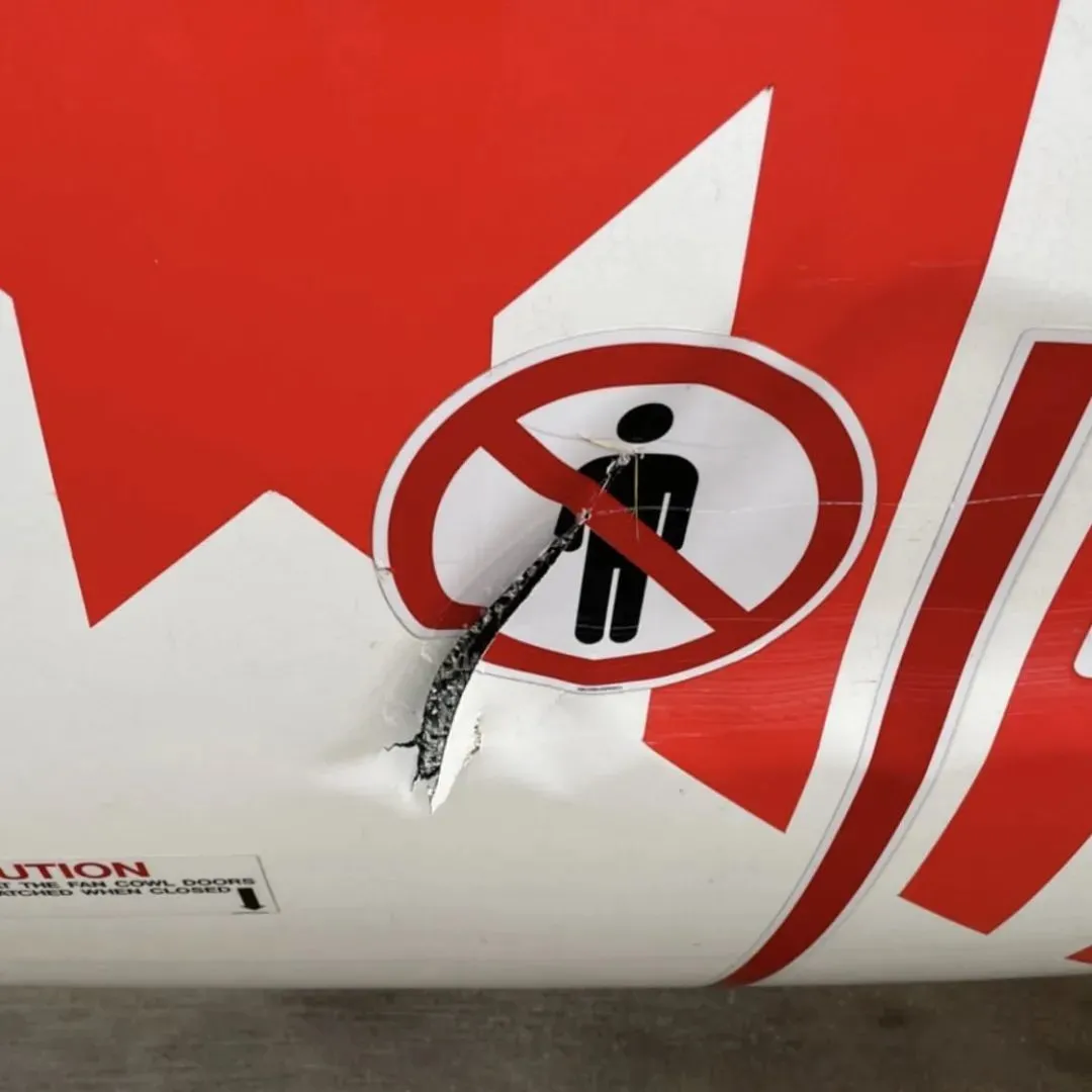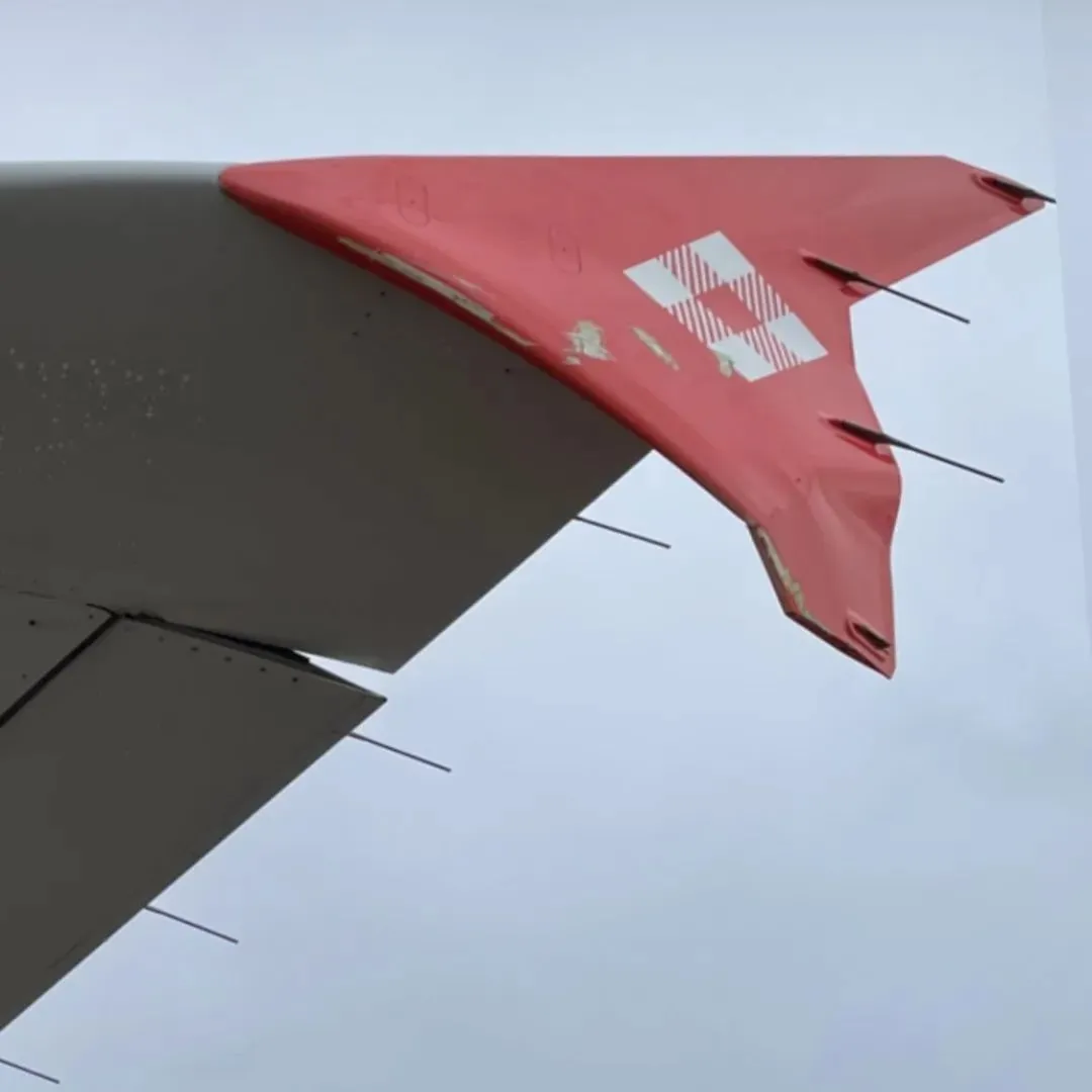 這是一架最多可搭載156名乘客的商用噴氣式飛機,在猛烈的風暴中,這架飛機的左側翼刀和發動機整流罩受損。