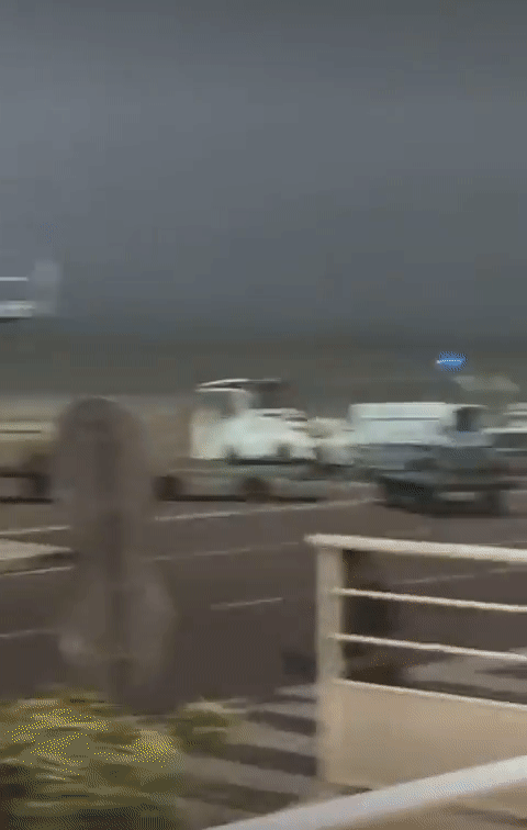 網上流傳的一段戲劇性的視頻顯示了這股暴風的強度,先是一個碎片被吹到空中: