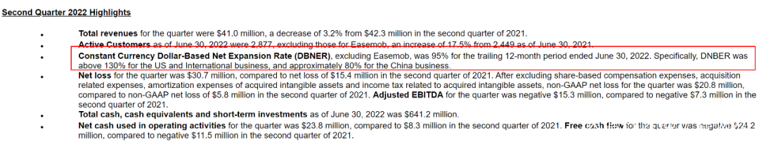結合上一個基於美元擴張率的數據,也就是一年內客户付費項目的數據比例降低到100%以下,實際表明這一年雖然客户數量增加了428個,但客户消費的金額卻比2020年6月到2021年6月這一個計算週期下降了5%。