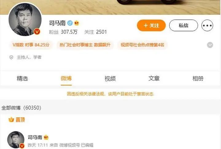 7. 司馬南在微博、抖音等多個平台已被禁言