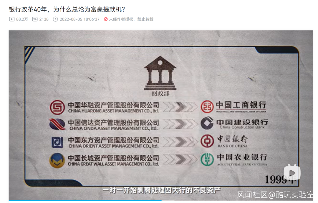 1985年以後,國家實行“撥改貸”政策,對國企單位的財政撥款大部分改為了貸款,但這裏出過一個很大的bug,因為中國是社會主義國家,國企和國有銀行相當於是一個老闆,後來就發生大量地方上的項目一分錢不投直接找銀行批貸款的情況,導致了90年代末鉅額的國有銀行壞賬。