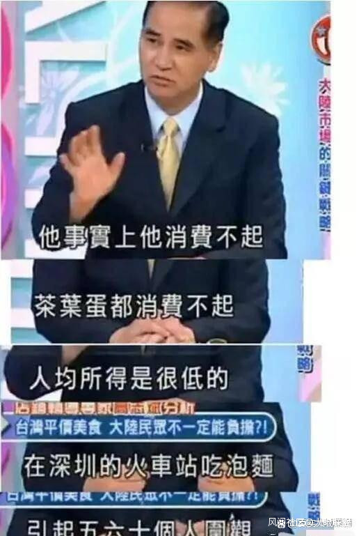 有超過一半的台灣人認為大陸人:“茶葉蛋和榨菜都吃不起”、“缺糧缺蛋白質缺到要去吃田鼠”、“在火車站吃泡麪都能引來50人圍觀”……