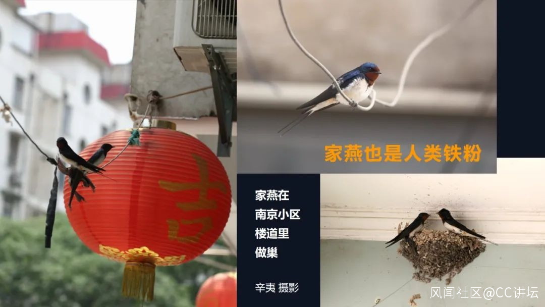 還有一種鳥家燕,它幹嘛叫家燕呢?它就是跟着人家走的,在民宅的屋檐下,或者是甚至到堂屋的房樑上做巢的,而且家燕極其聰明,嫌貧愛富,誰家日子過得不好,你要是吵架罵人,唉聲嘆氣,家燕肯定不去,都去小康人家。可是你看現在城市樓房,沒有屋檐,大門都緊閉,家燕去哪?所以咱們城市就適合人類生活,等於謝絕家燕進城,所以也不能説,為了野生動物,我們一定要怎麼怎麼樣。你既然要這樣的環境,你想看鳥上野外去看去。