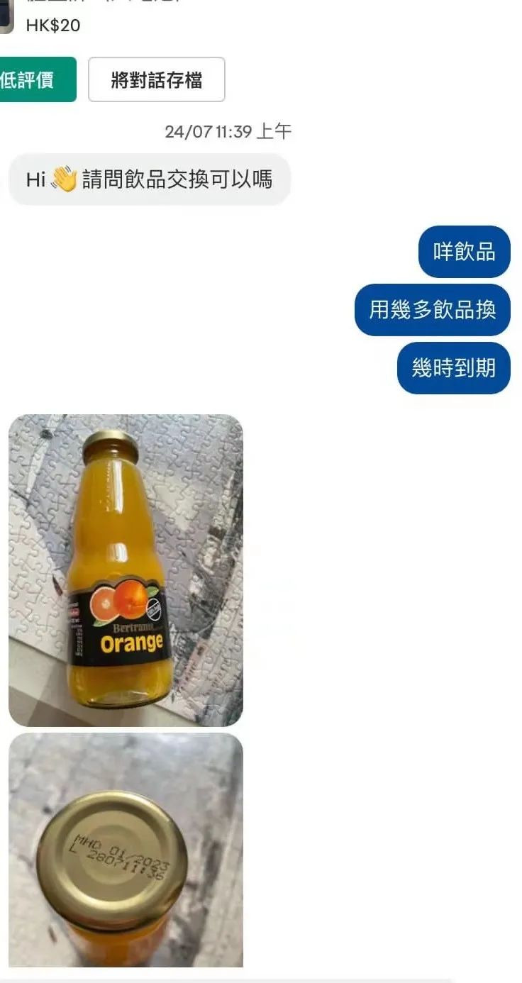 對方竟當真發了飲料圖片過來,表達自己真心想兑換的誠意。