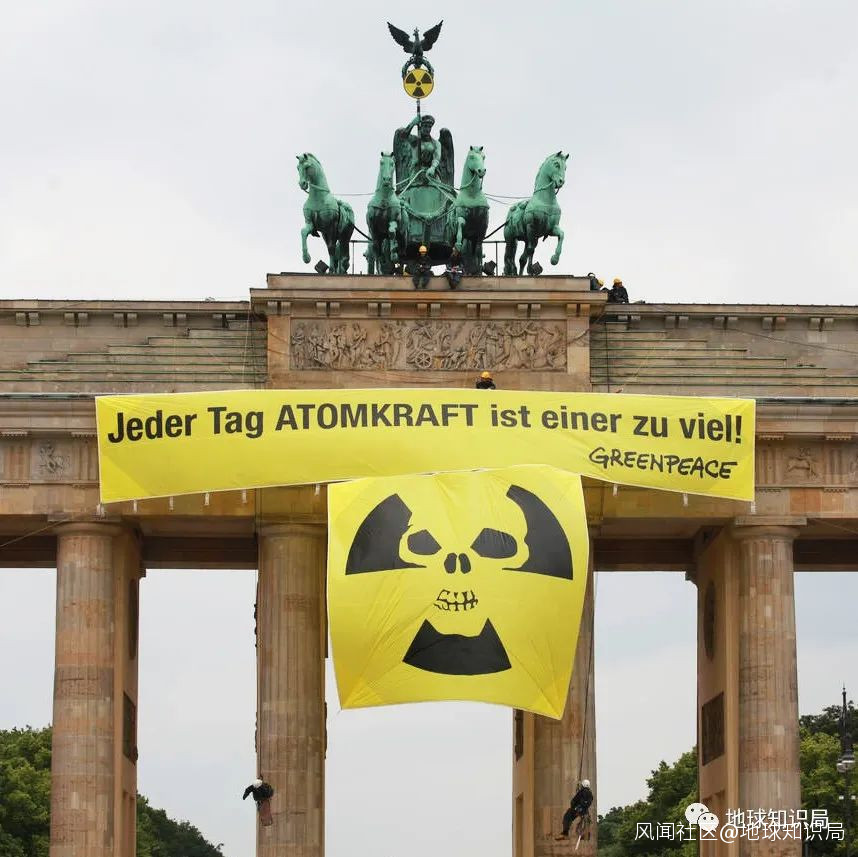 柏林勃蘭登堡門被掛上了抗議核電的橫幅
