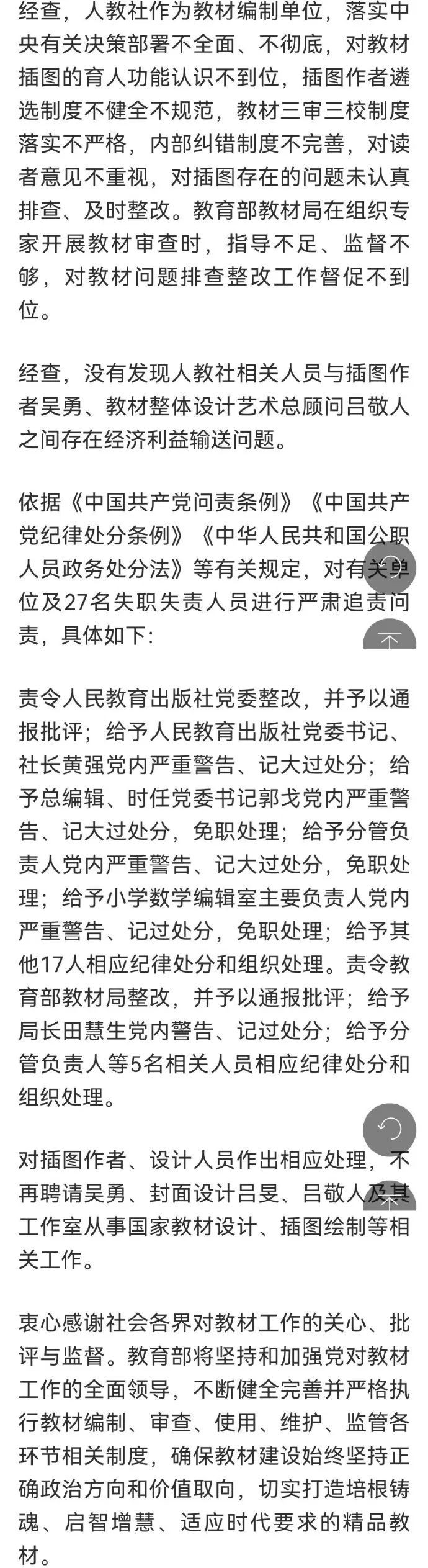 之前網上曝光的人教社毒教材的事兒,經過了長達三個月的調查,終於出結果了: