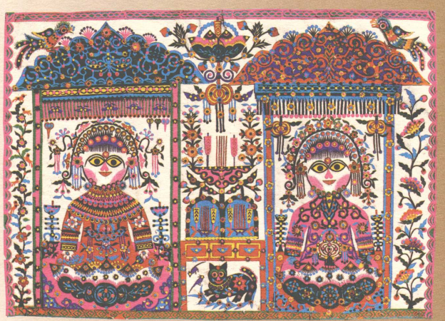 剪花娘子把言傳,爬溝遛渠在外邊,沒有廟院實難堪