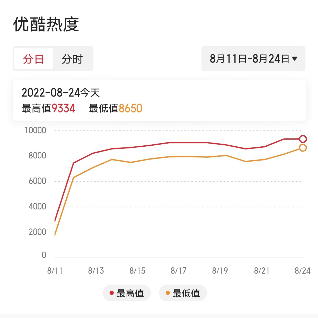 貓眼專業版上的優酷熱度,始終都維持在一個較高的水平