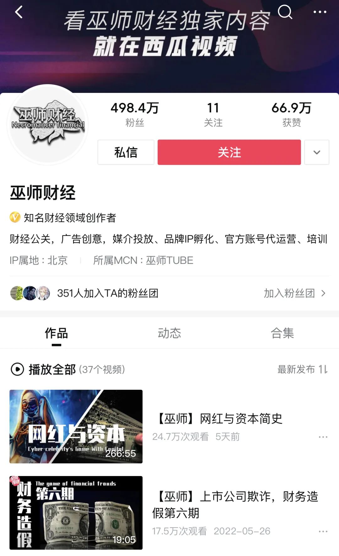 兩年前,巫師財經從B站跳到西瓜視頻,坊間傳聞後者開出高達1000萬元人民幣的費用。這一數字從未得到證實。但彼時的西瓜視頻在母公司的支持下,確實財大氣粗、出手豪邁。