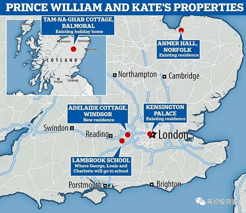 最近幾個月,年事漸長的女王因為行動不便一直住在温莎城堡,威廉和凱特搬家後,他們距離女王更近了(走路10分鐘),離凱特父母的住處也只需開車45分鐘。