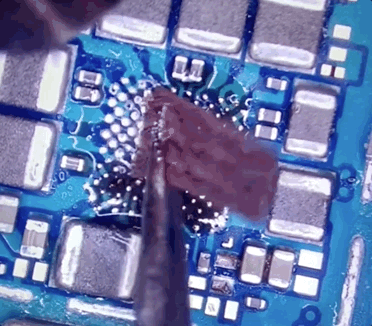 那台手機的雙層主板直接被摔成了兩半,當我們觀察上層的邏輯主板時,瞬間心就涼了半截,CPU被摔出了一個很深的坑。雖然硬盤沒有受損,但CPU和硬盤之間是加密的,兩者損壞一個,資料就找不回來了。這種情況下能夠修復的概率極低。幾番測試以後,我們排除了各種原因,發現確實是CPU的主體壞死了。到最後,我們只能跟他説,非常抱歉沒能挽回您手機裏的資料,但我們真的盡了最大努力了。