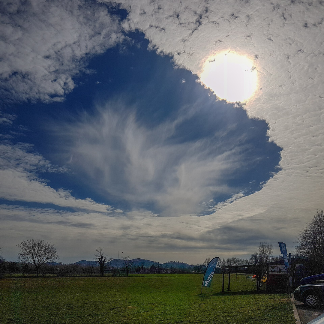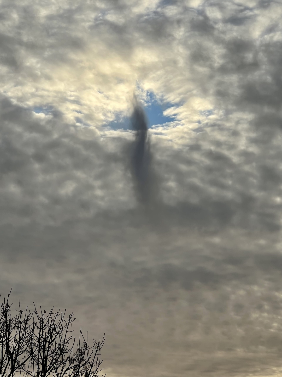 其實專業上,這是一種被稱為“雨幡洞雲”(Fallstreak hole)的現象,通常出現在卷積雲或高積雲中。