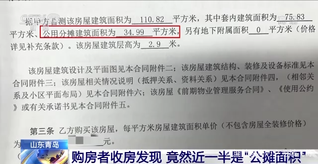 買房的時候,很多人都會詢問房子的“公攤面積”是多少,畢竟掏出這麼多錢,不少人還要貸款,每一平方米都很在意。在山東青島,有購房者收房時卻發現,自己買的房子,公攤面積達到了46%以上,接近一半面積的房子被公攤給攤出去了。到底怎麼回事,一起來看記者的調查↓