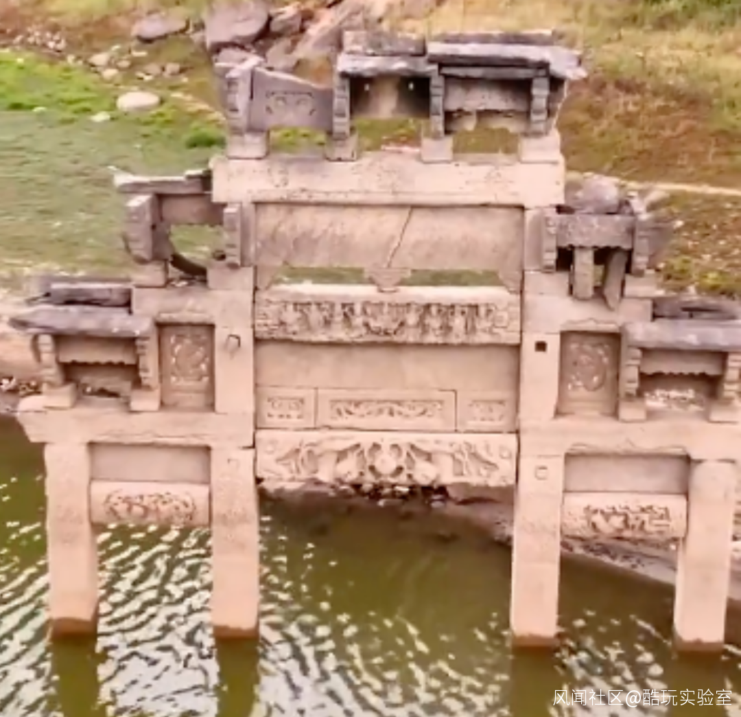 8月23日,湖北大治龍角山脈大箕山下的石家晚水庫,清朝雍正牌坊幾乎全部露出水面,不少當地市民慕名圍觀。上一次露出水面,還是12年前水庫整險加固。
