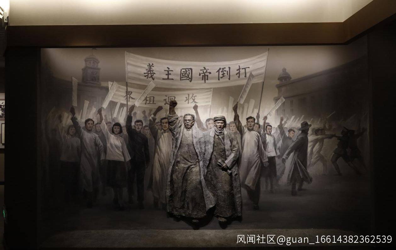 圖|青年學生參加反帝國主義遊行浮雕畫像