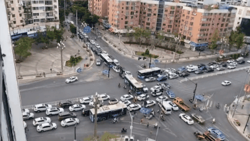 車輛擁擠在路口,無所適從。