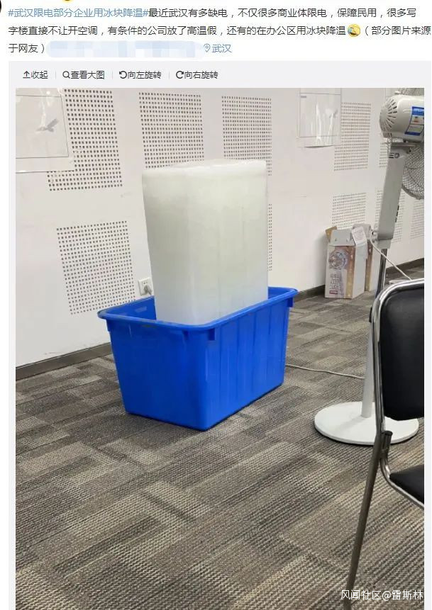 有些寫字樓開不了空調,要麼直接放假,要麼自己買冰塊降温。