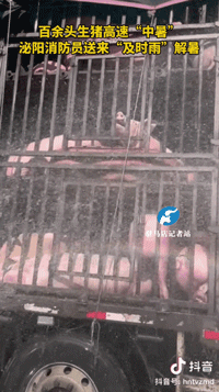 一車豬,高速上跑着跑着,中暑蔫了。