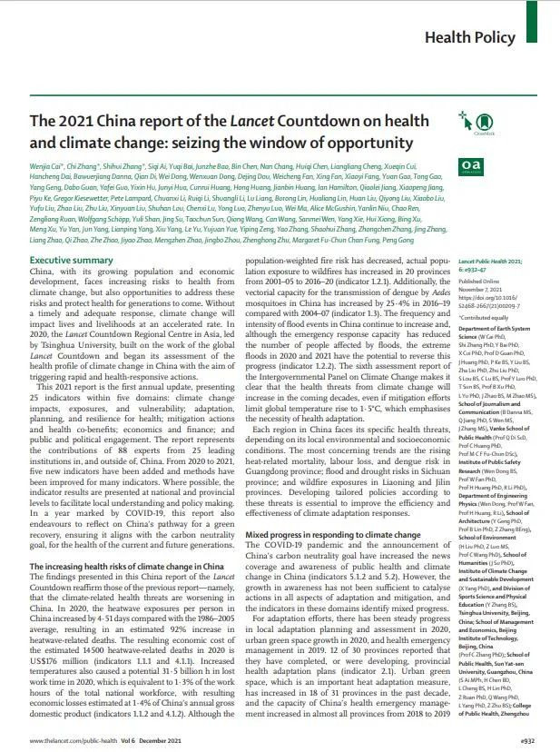 (本文由88位專家署名發表:Wenjia Cai*, Chi Zhang*, Shihui Zhang*, Siqi Ai, Yuqi Bai, Junzhe Bao, Bin Chen, Nan Chang, Huiqi Chen, Liangliang Cheng, Xueqin Cui, Hancheng Dai, Bawuerjiang Danna, Qian Di, Wei Dong, Wenxuan Dong, Dejing Dou, Weicheng Fan, Xing Fan, Xiaoyi Fang, Yuan Gao, Tong Gao, Yang Geng, Dabo Guan, Yafei Guo, Yixin Hu, Junyi Hua, Cunrui Huang, Hong Huang, Jianbin Huang, Ian Hamilton, Qiaolei Jiang, Xiaopeng Jiang, Piyu Ke, Gregor Kiesewetter, Pete Lampard, Chuanxi Li, Ruiqi Li, Shuangli Li, Lu Liang, Borong Lin, Hualiang Lin, Huan Liu, Qiyong Liu, Xiaobo Liu, Yufu Liu, Zhao Liu, Zhu Liu, Xinyuan Liu, Shuhan Lou, Chenxi Lu, Yong Luo, Zhenyu Luo, Wei Ma, Alice McGushin, Yanlin Niu, Chao Ren, Zengliang Ruan, Wolfgang Schöpp, Yuli Shan, Jing Su, Taochun Sun, Qiong Wang, Can Wang, Sanmei Wen, Yang Xie, Hui Xiong, Bing Xu, Meng Xu, Yu Yan, Jun Yang, Lianping Yang, Xiu Yang, Le Yu, Yujuan Yue, Yiping Zeng, Yao Zhang, Shaohui Zhang, Zhongchen Zhang, Jing Zhang, Liang Zhao, Qi Zhao, Zhe Zhao, Jiyao Zhao, Mengzhen Zhao, Jingbo Zhou, Zhenghong Zhu, Margaret Fu-Chun Chan Fung, Peng Gong)