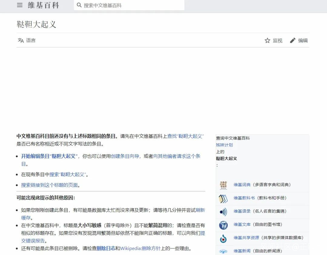 現在,維基百科中文版內,有關“韃靼人起義”的內容已經被刪除得一乾二淨