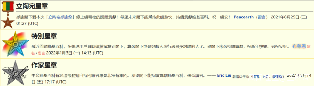因為“折毛”對“古羅斯史”的貢獻,贏得了多位用户贈送的星章