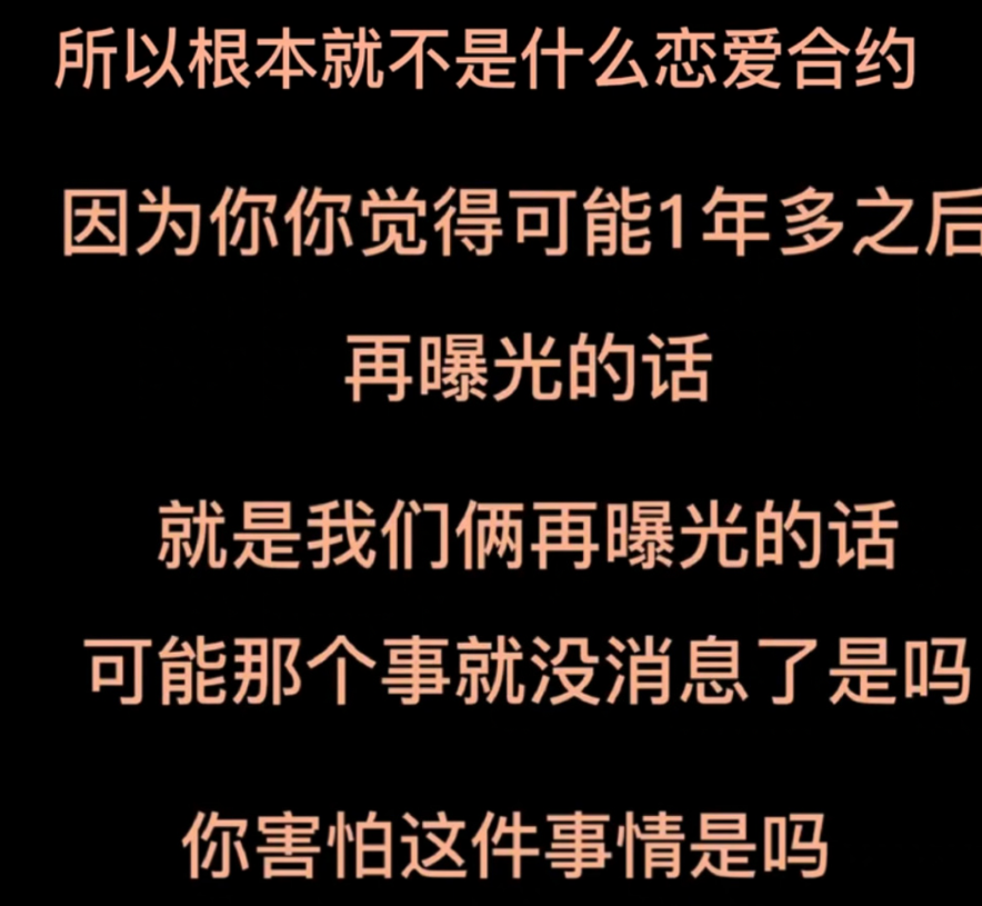 從兩人的對話能夠聽出,原來他們之前交往不公開戀情的理由,是男方曾和女方説公司“有戀愛合約”,怕公佈戀情影響工作發展。