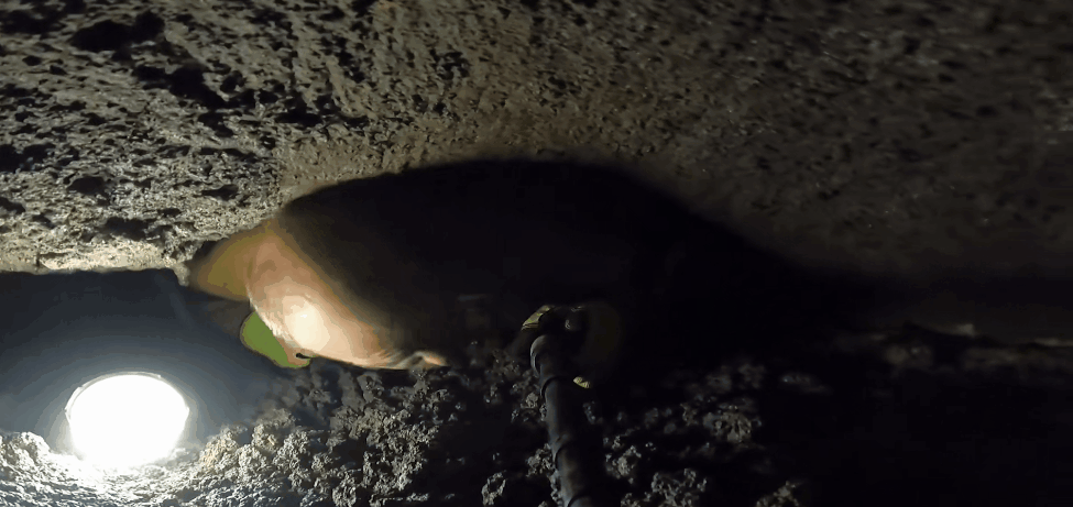 接下來約翰驚恐地發現,由於通道是垂直向下的,他想縮回來卻使不上勁。就這樣,約翰垂直卡在洞穴裏動彈不得。