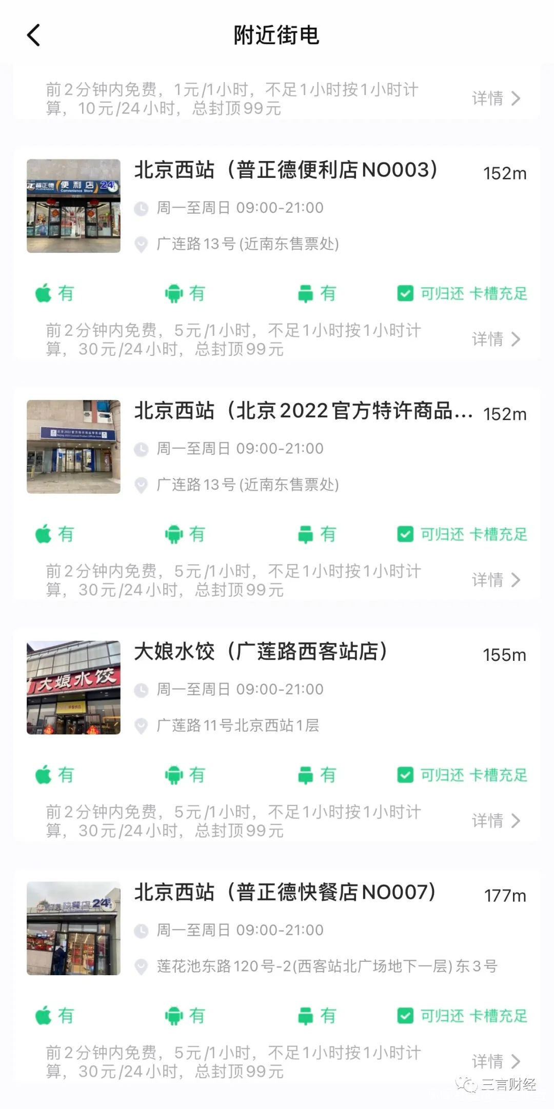 以筆者所在的亞運村地區為例,有的街電充電寶價格為3元/小時,30元/24小時,總封頂99元;