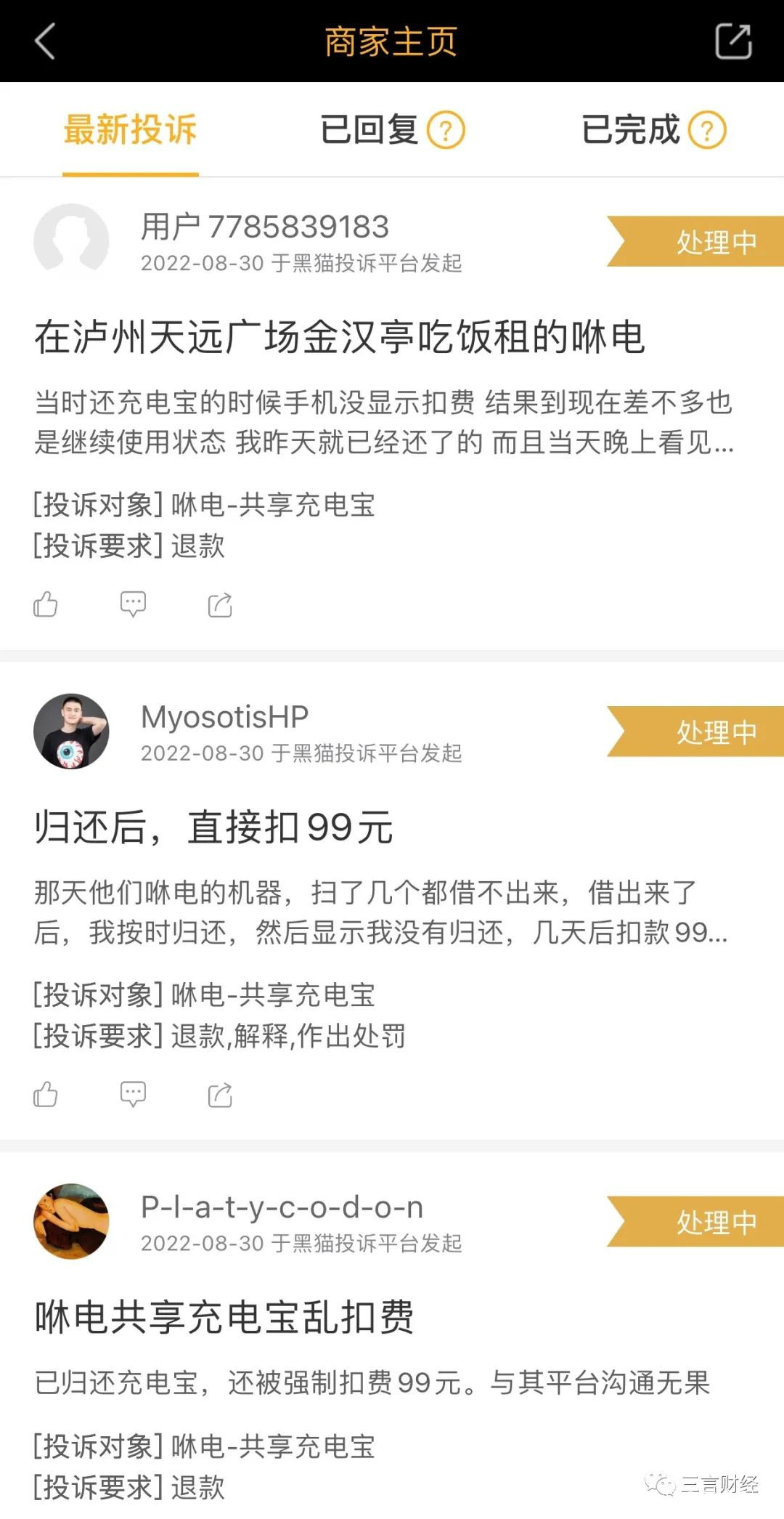 筆者隨便查看各品牌的投訴內容發現,這一萬多條投訴內容中,絕大多數都是消費者控訴使用完充電寶歸還後,仍然很長時間內顯示未還,並繼續扣費。