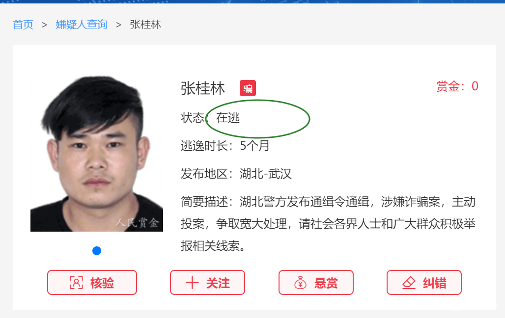比如賞金為0的張桂林,人民賞金網上寫他逃逸5個月了。