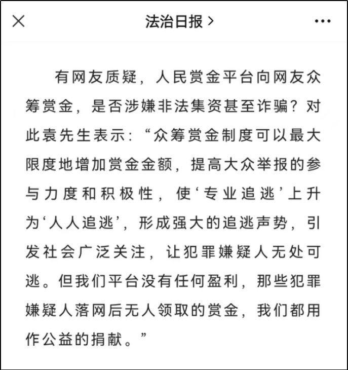 而現在,它有誘導網友進行懸賞金打賞的嫌疑,所以有人懷疑它在蹭熱度的同時,又在非法集資。