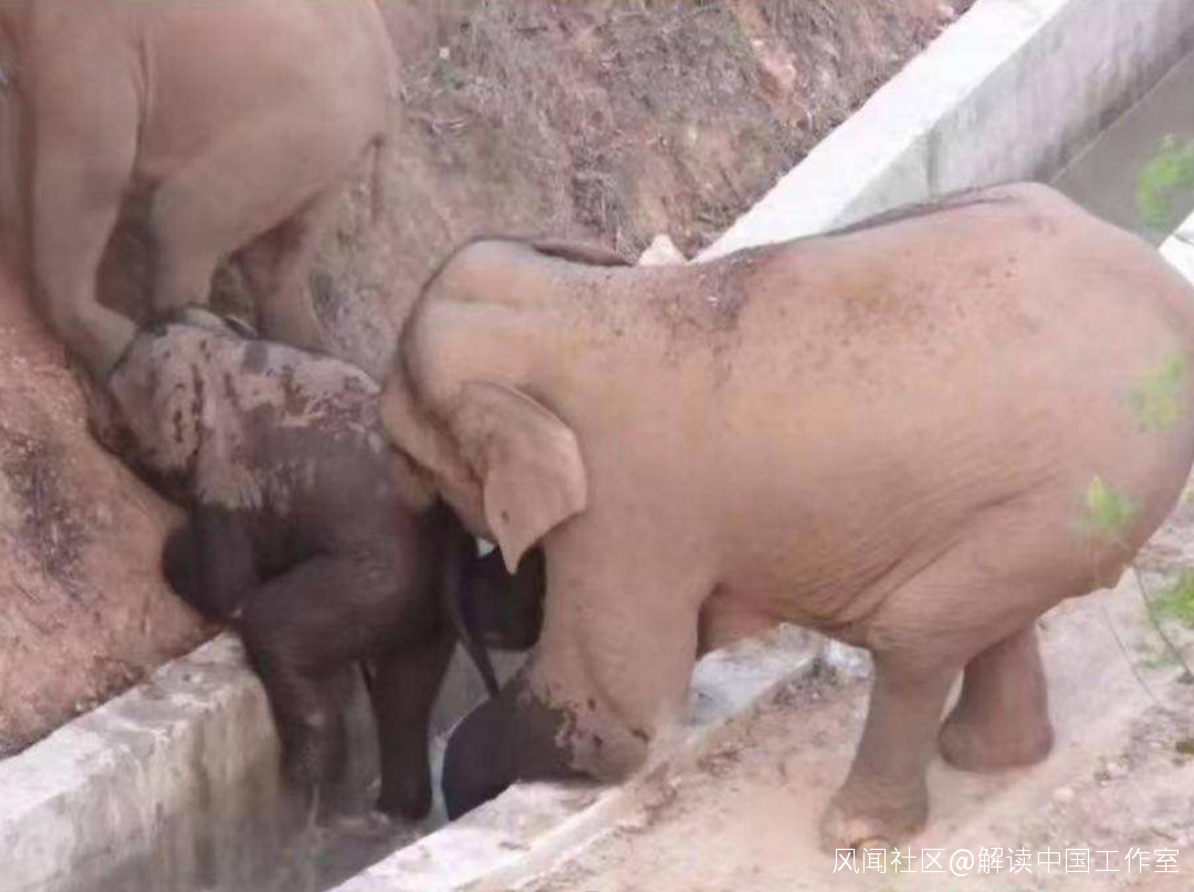 同時,這一路旅程,除了悠閒與愜意,我們隊員接連拍攝到的一張張畫面,也在不斷刷新着人們對野生亞洲象羣的認知。比如,第一次拍到象羣集體躺在密林中睡覺,第一次拍到大象用鼻子翻開井蓋喝水,第一次拍到大象戴草帽扇扇子,第一次拍到象媽媽用鼻子幫助小象爬坡過坎、遮風擋雨,尤其是在小象落水,體力不支面臨生命危險時,象媽媽捨身託舉的場景,讓人們越來越堅信,在亞洲象龐大的身軀裏,承載着與人類相似的智慧與情感。