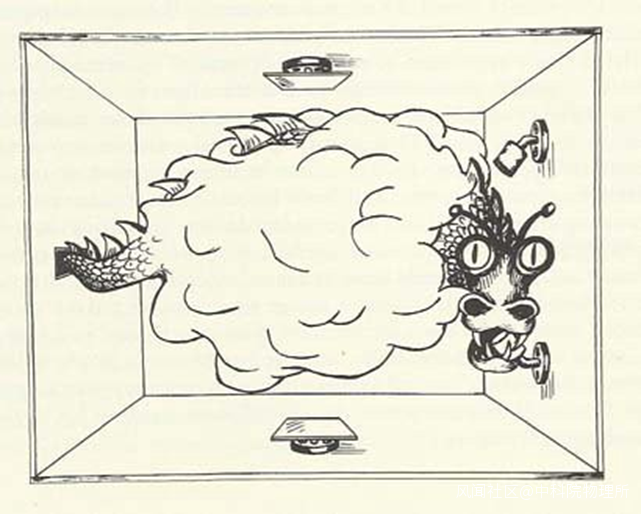 美國理論物理學家約翰·阿奇博爾德·惠勒也研究了這些問題,或者至少是類似的問題。他用“煙霧巨龍”的形象來表達他的觀點。他指出,在實驗輸入和實驗輸出(或觀察)之間,“我們無權談論存在什麼”。因此,像“粒子”和“波”這樣的詞自然會受到懷疑——至少在這兩個詞用於實驗過程中時(即,假設的龍的身體的“真實性”)是這樣的。因此,在輸出之前(即,在實際實驗或觀察之前存在和發生的情況)將量子x描述為“粒子”或“波”,與在實驗或觀察輸出之後以這種方式描述量子x之間存在區別。然而,即使已經進行了實驗(或觀察),也就是當量子波函數已經“塌縮”時,使用這些經典詞彙可能仍然有問題。再次引用玻爾的話。根據布魯克斯的説法,玻爾認為