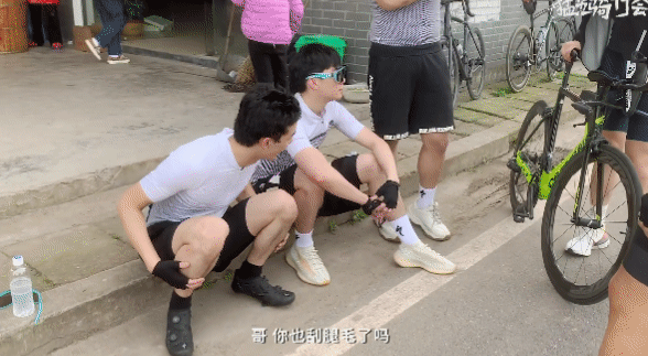 發現同行的騎友為了「破風」剃毛,於是有了這一幕——#男明星坐馬路牙子大談腿毛。